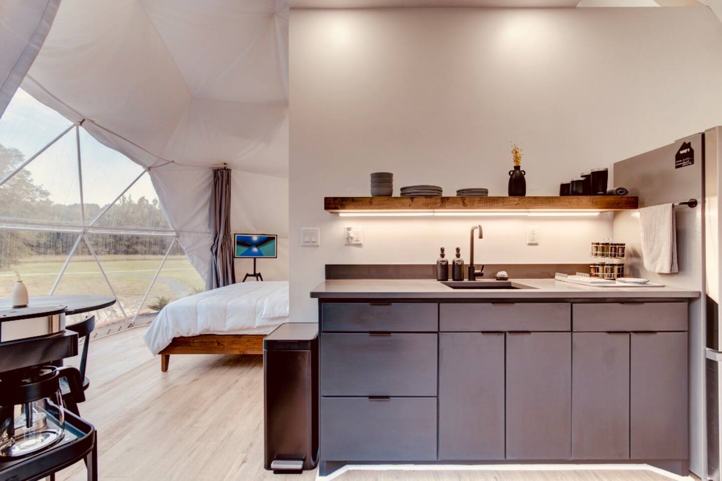 Our geodesic dome glamping unit offers a unique blend of luxury and nature, providing a beautiful and comfortable escape into the outdoors. While thoughtfully designed with upscale touches and a heating/cooling system for temperature regulation, please keep in mind that this is ultimately a tent, not a traditional home or hotel. As such, the experience will be different—closer to the natural elements and environment. To ensure your comfort, we kindly ask that you keep the door closed as much as possible to prevent insects from entering and to help the climate control system function effectively. Additionally, please close the curtains when leaving the property or during midday to assist in maintaining a stable indoor temperature. Please note that our glamping site is located in a peaceful, rural area—perfect for disconnecting and enjoying nature. While we do provide satellite internet for your convenience, the connection can occasionally be spotty, particularly during poor weather conditions. We encourage guests to embrace the slower pace and take this opportunity to unwind and enjoy the natural surroundings, though we understand the importance of staying connected and do our best to maintain reliable service.